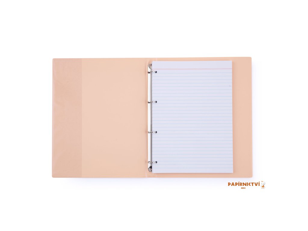 PVC blok Pastelini v moderních pastelových barvách se čtyř kroužkovou mechanikou, formát A4, obsahuje 100 linkovaných listů, gramáž listů 60g/m².
