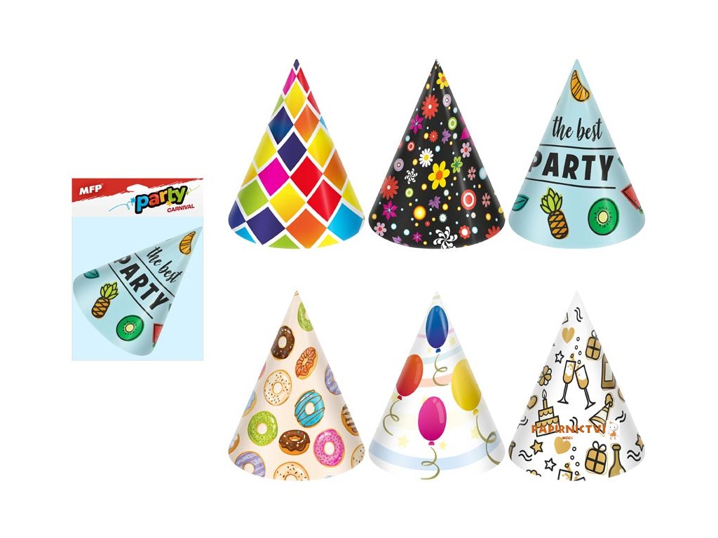 Klobouček karnevalový 6ks 16cm papírový mix č.5 1042018