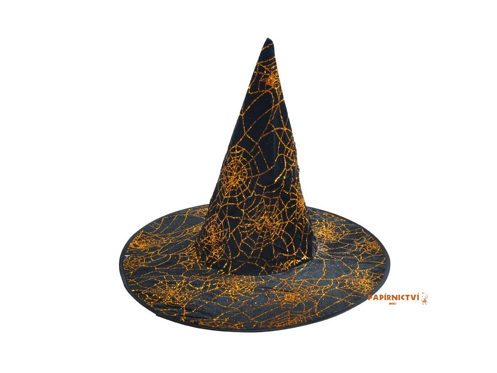 Klobouk čarodějnický černo-zlatý 32x32cm 1042268