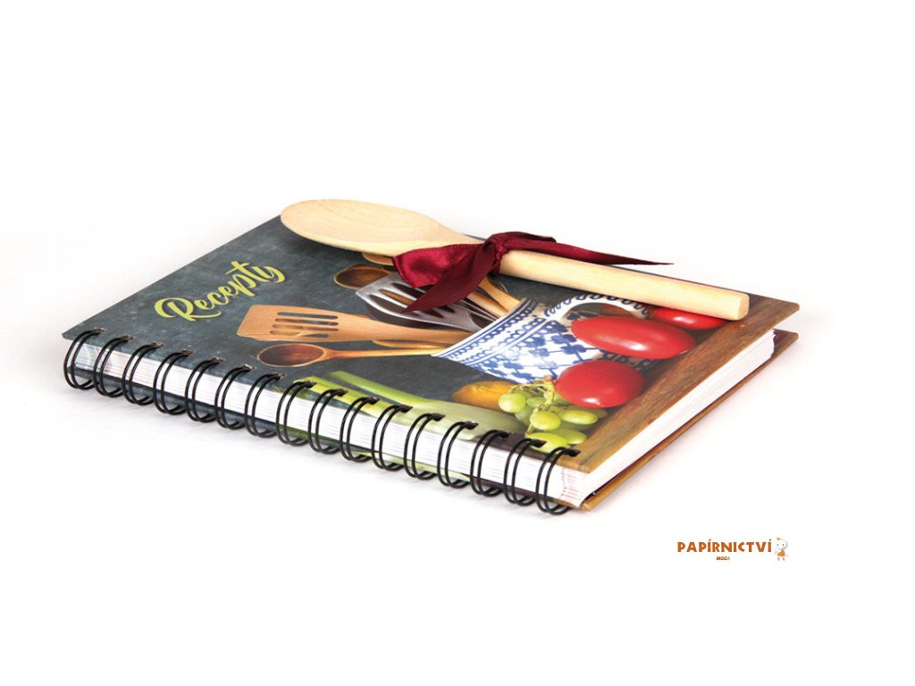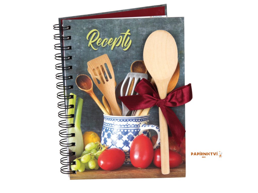 Nové knihy na recepty s vařečkou obsahují úplně nové zpracování vnitřních listů. Stránky jsou linkované bez popisků. Každých 8 listů je rozděleno papírovým rozdělovníkem, který je možno si popsat druhem receptu. Kniha obsahuje celkem 10 rozdělovníků. Kniha s boční dvojitou spirálou a velmi kvalitním pevnými deskami je perfektní jako dárek pro vášnivé kuchaře a kuchařky, které si chtějí uchovat svoje nejlepší recepty. Na úvodních deskách je mašlí připevněna vařečka, kterou lze používat při vaření, místo ní si pak můžete připevnit např. tužku na psaní receptů.