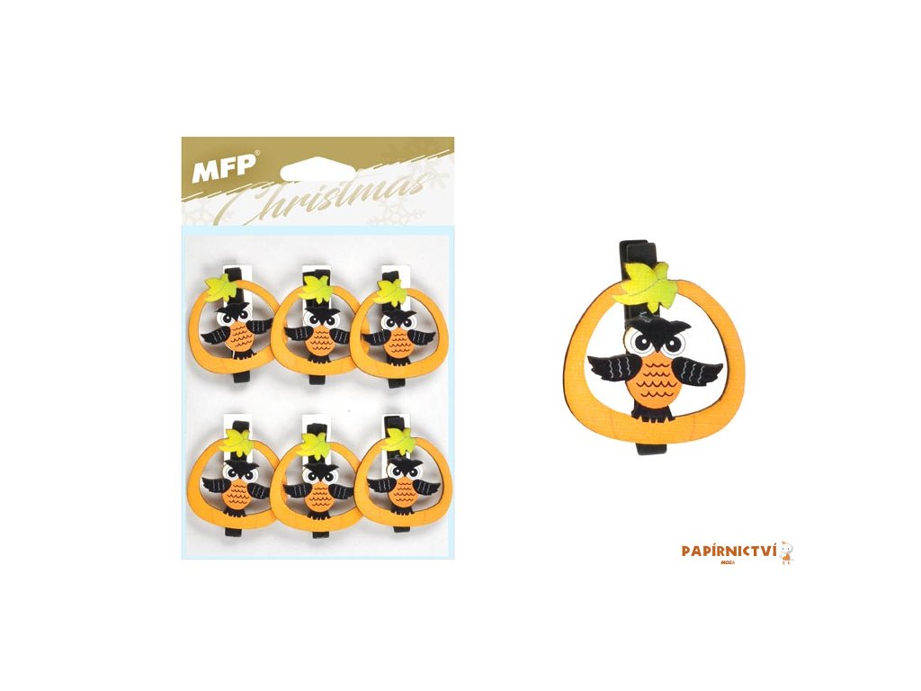 Kolíček dřevěný halloween sova 6ks/4,8cm XC20191491 8885984