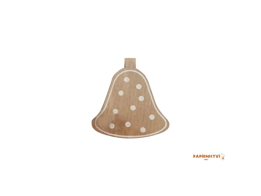 Vánoční, dřevěná dekorace kolíček se zvonečkem, ozdobí váš vánoční dárek, přáníčka nebo je můžete kamkoliv jinam připnout a ozdobit tak váš interiér. Vyrobeno z překližky.BALENÍ OBSAHUJE: