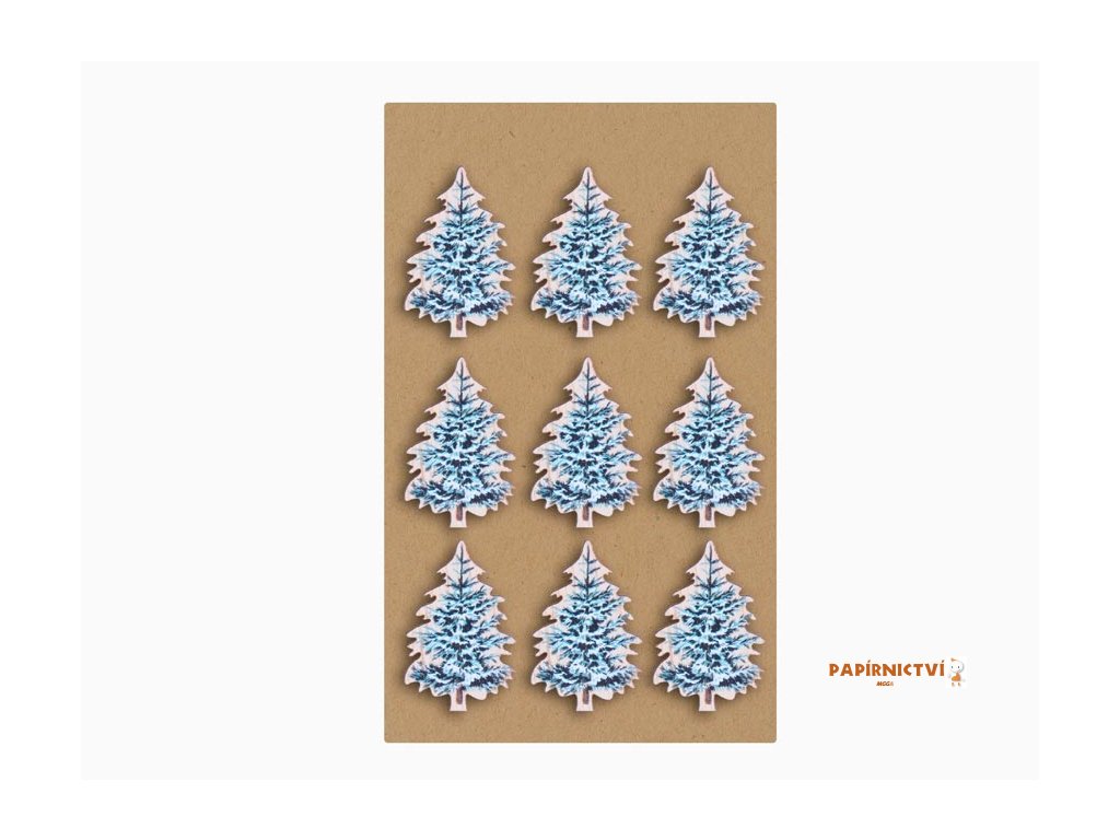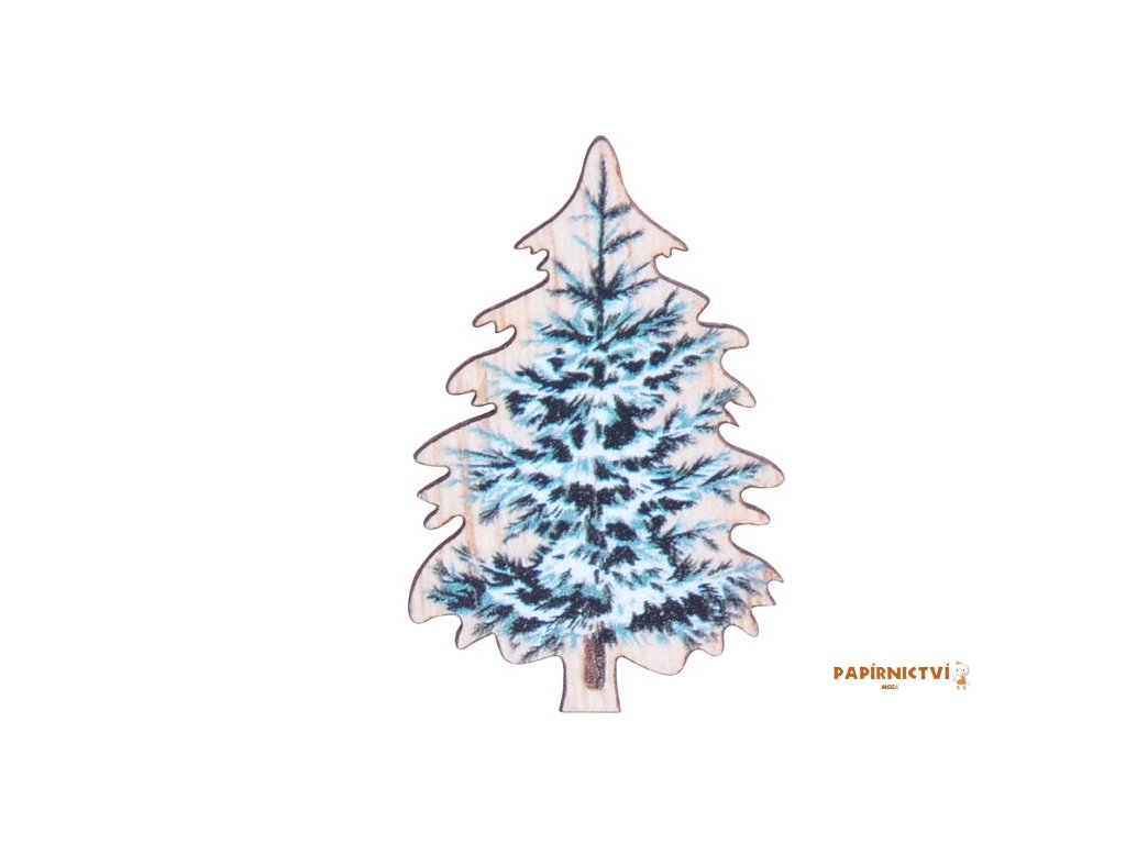Vánoční, dřevěná dekorace kolíček ve tvaru stromečku s obrázkem zasněženého smrčku, ozdobí váš vánoční dárek, přáníčko nebo je můžete kamkoliv jinam připnout a ozdobit tak váš interiér. Vyrobeno z překližky.BALENÍ OBSAHUJE: