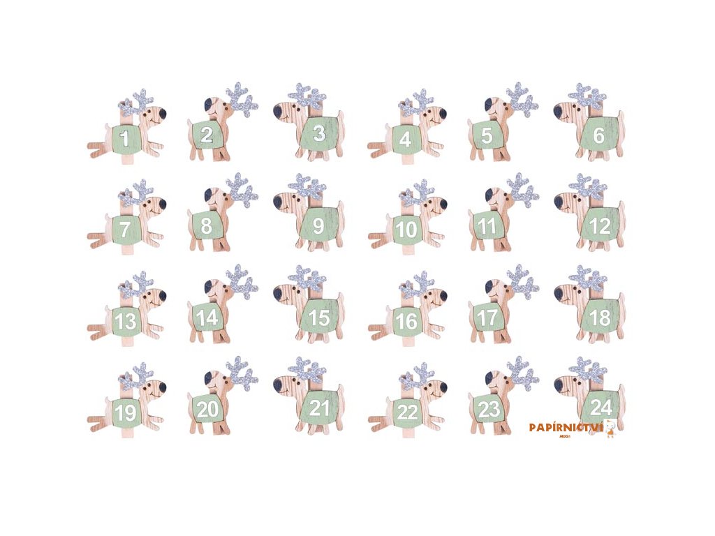 Kolíčky Adventní kalendář sob dřevo 24ks 8886459