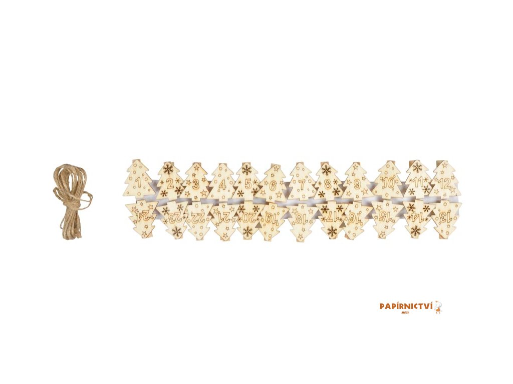 Kolíčky Adventní kalendář stromeček dřevo 24ks 8886132