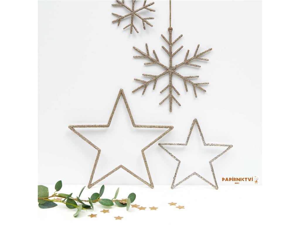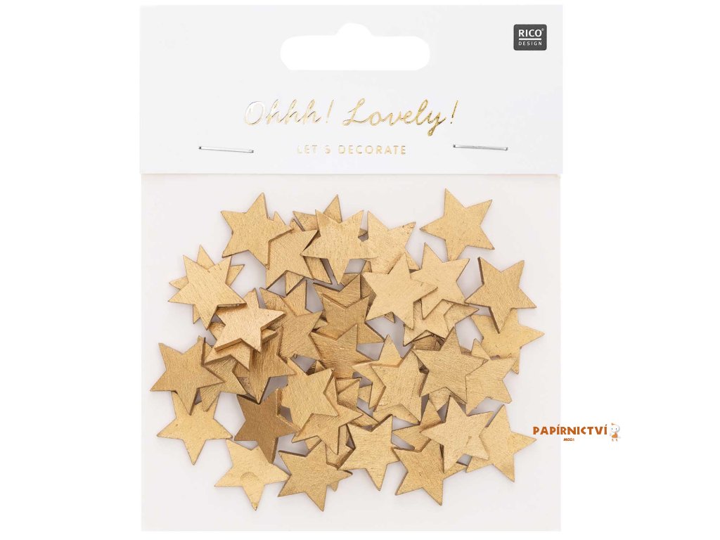 Konfety hvězda, dřevo, 48ks, zlaté