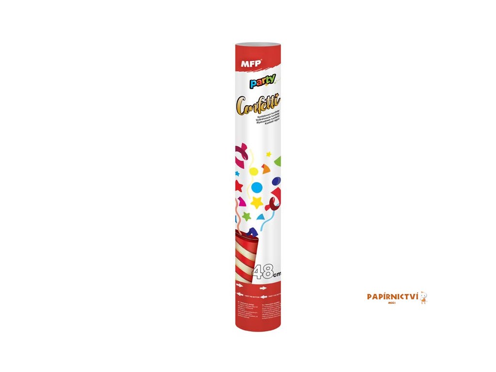Konfety vystřelovací se stlačeným vzduchem papírové (48 cm). Jsou oblíbenou zábavou na každé párty a významné události jako je svatba, narozeniny aj.NÁVOD K POUŽITÍ: