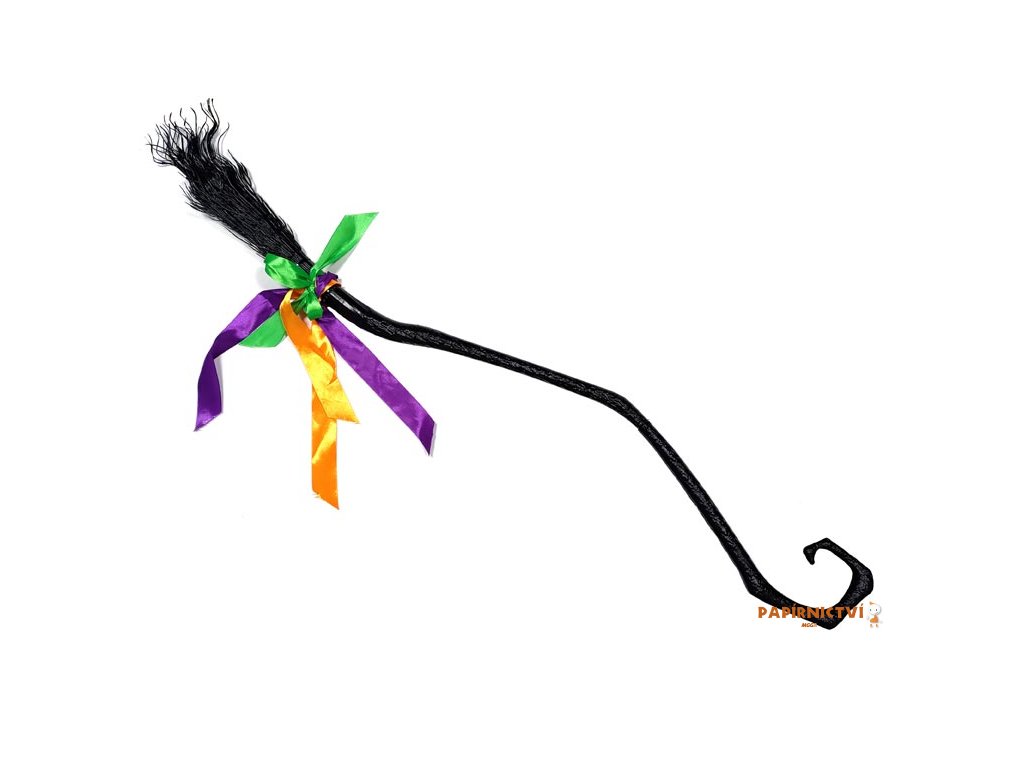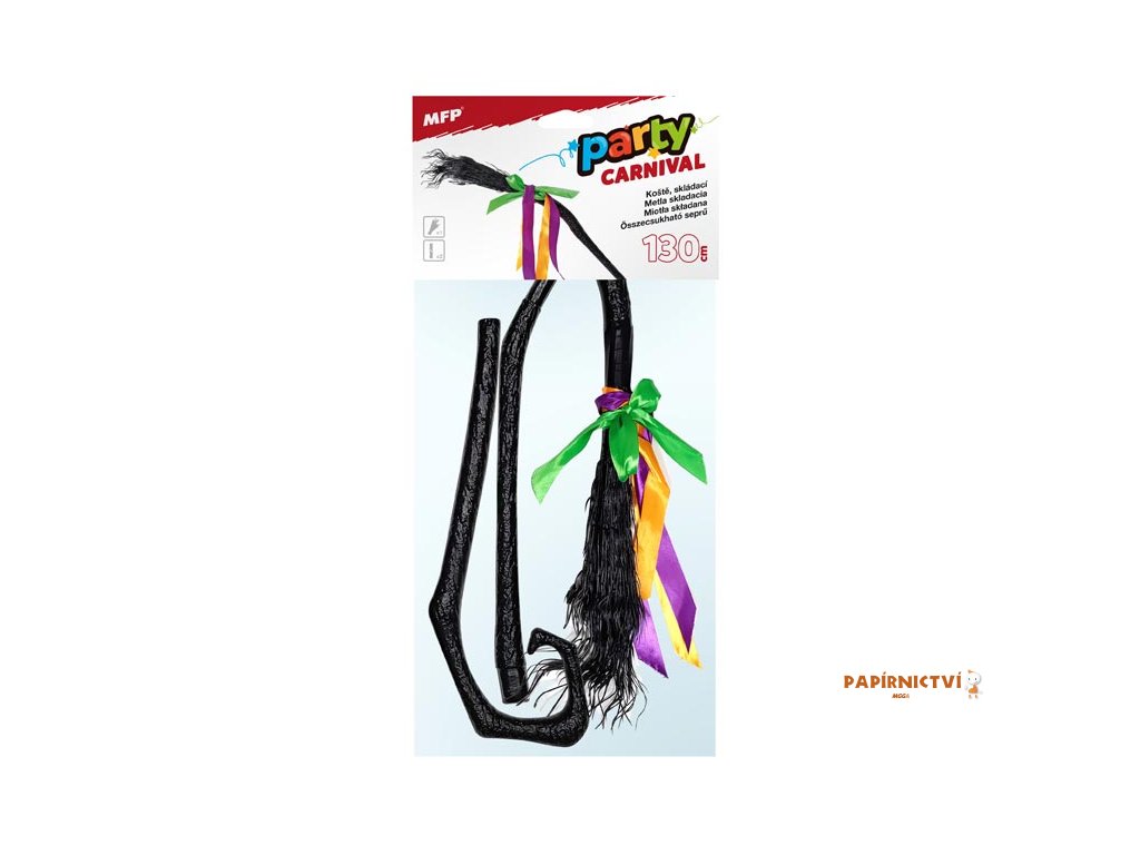 Čarodějnické skládací koště zahnuté, ozdobené na konci barevnými stužkami. Ideální doplněk ke kostýmu čarodějnice. Vyberte si z naší nabídky ještě čarodějnický plášť, klobouk, nehty a Váš kostým bude kompletní.Délka: 130 cm