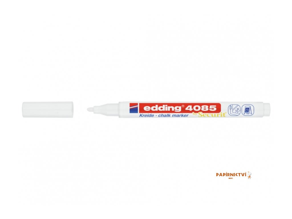 Krídový popisovac edding 4085 je nepermanentní fix ve forme tekuté krídy. Tenký hrot nabízí cistou precizní stopu. Inkoust na bázi vody vyniká vysokou krycí schopností, proto je napsaná stopa velmi dobre videt. Krídový popisovac lze využít k psaní na okna, skla, plexiskla, zrcadla a tmavé tabule. Inkoust se dá smýt ze všech neporézních materiálu vlhkým hadríkem. Tekutá krída edding je oblíbená v hotelích, restauracích, barech a zároven ve sklárském prumyslu. Využívá se také ke zdobení a popisování oken v domácnostech a v kancelárích. Neonové barvy jsou viditelné pod UV svetlem. Tok inkoustu je rízen ventilem, a proto je pred prvním použitím potreba popisovac protrepat, sejmout vícko a lehkým pumpováním umožnit inkoustu stéci do hrotu. Skladujte ve vodorovné poloze. Kulatý hrot. Šíre stopy: 1-2 mm.Doplňkové parametry
