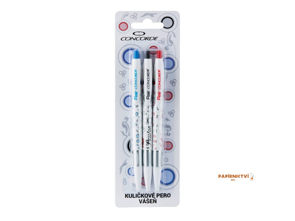 Kuličkové pero CONCORDE Vášeň 3ks, 0,6mm, blistr A59939