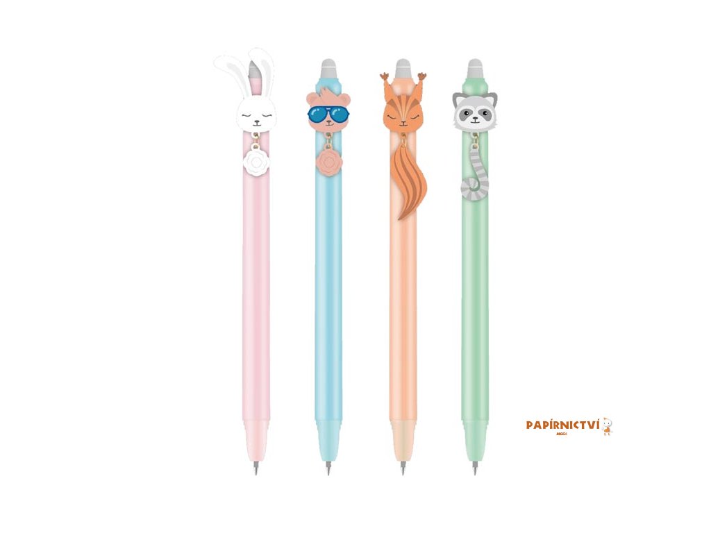 Gumovací kuličkové pero s motivy zvířátek v pastelových barvách. Pero obsahuje speciální inkoust tzv. vymaž a přepiš, nebo vymaž a nech znovu objevit. Pokud uděláte chybu, stačí jen otočit pero a plastovou špičkou text vymažete. Špička zahřeje inkoust, ten zmizí a lze je znovu přepsat. Můžete si psát i tajné vzkazy, po vygumování stačí jen papír ochladit pod bod mrazu a text se znovu objeví. Tato vymazatelná propiska je balena v papírovém stojanu po 20 ks.Přečtěte si, na jakém principu funguje gumovací pero Wizard!