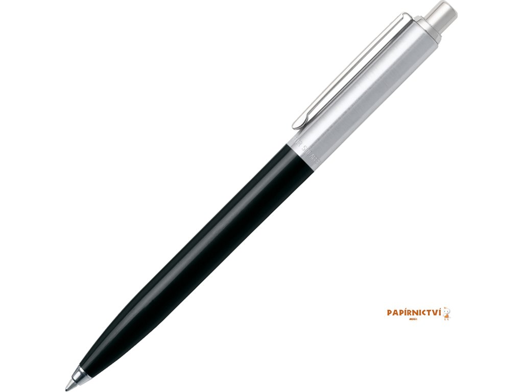 Klasické kuličkové pero z plastu v černé barvě, v kombinaci s chromovanou kovovou vrchní částí a chromovanými doplňky. Elegantní štíhlé pero pro každodenní použití. Tlačítkový mechanismus vysunutí náplně.
