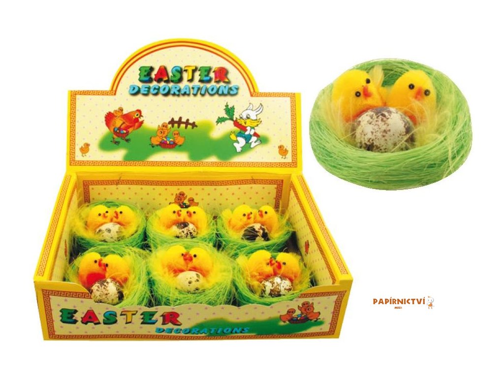Kuřátka plyšová v zeleném hnízdě 6 cm, cena za 1 ks 8616