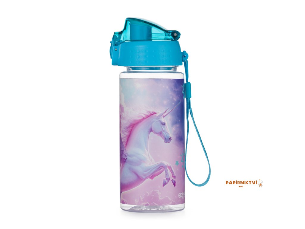 Dětská láhev na pití vyrobená z kvalitního a zdravotně nezávadného materiálu Tritan. Láhev je testována, neobsahuje BPA ani ftaláty. Vrchní část láhve je vybavena zámkem a otevíracím patentem, který funguje na principu změny polohy tlačítka (nahoru = zamčeno, dolů = otevřeno). Díky tomu je láhev snadno otevíratelná a zároveň chráněná proti nechtěnému vylití. Láhev má objem 500 ml, je vhodná do myčky na maximální teplotu 80 °C a je ideální pro děti od 5 let. Praktická šňůrka usnadňuje manipulaci a průměr pítka je 2,5 cm. Upozornění: Láhev není určena pro sycené nápoje..