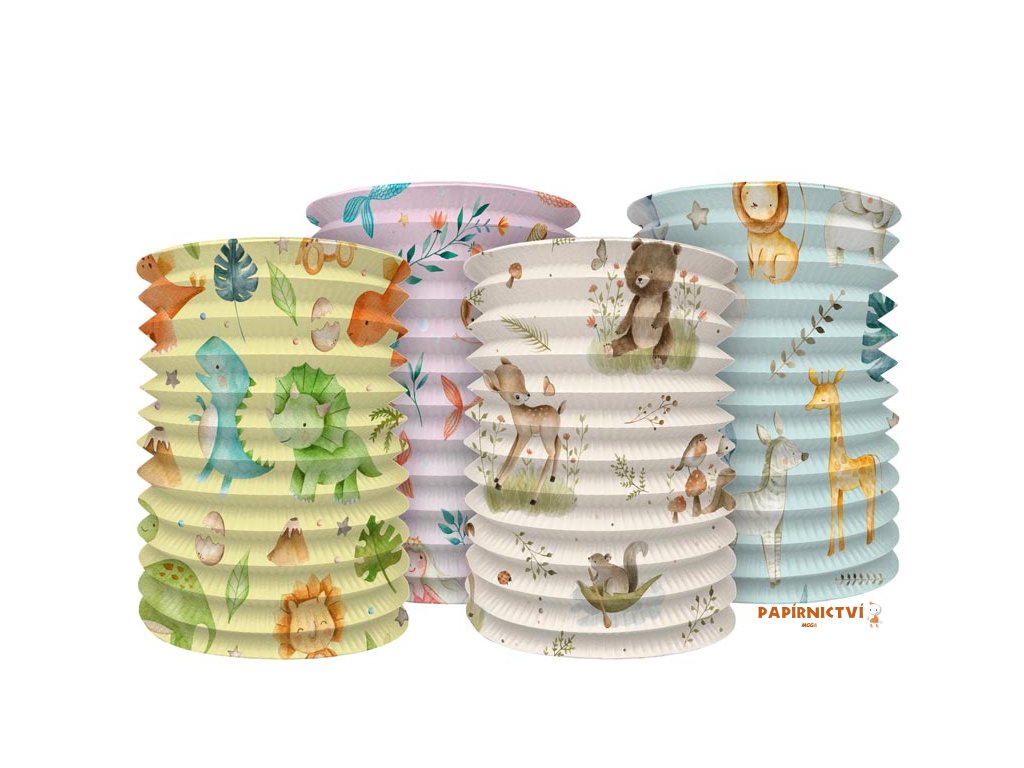 Papírový válcovitý lampion s dětskými motivy v mixu barev. Vhodný jako dekorace na party, lampionový průvod, zahradní slavnost, karneval, oslavu narozenin nebo jen tak na zavěšení do dětského pokojíčku. Vyberte si svůj lampion a udělejte z běžného večera kouzelný.