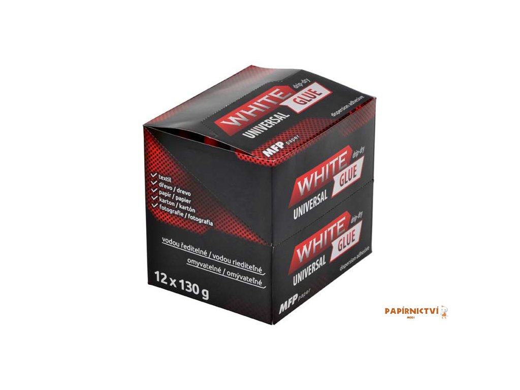 Disperzní bílé lepidlo na papír, karton, textil, fotografie, dřevo, kůži, koženku a korek. Díky unikátnímu uzávěru Twist může zvolit libovolné dávkování lepidla. Na špičce lepidla je malý hřebínek který lepidlo rovnoměrně rozetře po ploše.NÁVOD: