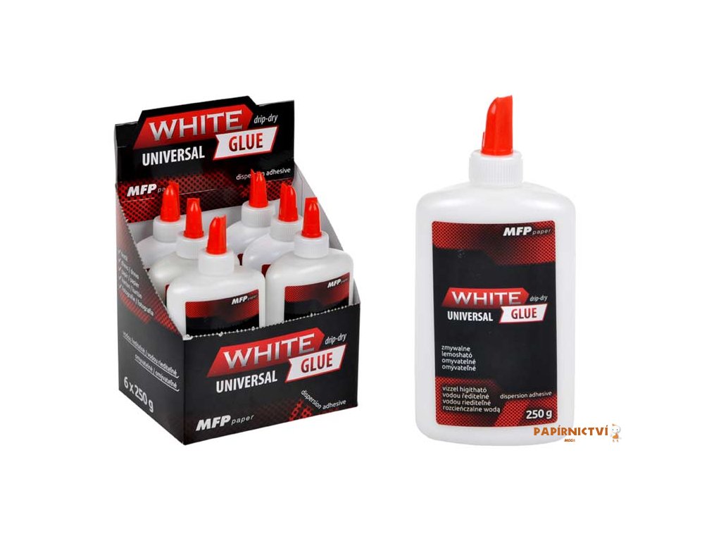 Disperzní bílé lepidlo na papír, karton, textil, fotografie, dřevo, kůži, koženku a korek. Díky unikátnímu uzávěru Twist může zvolit libovolné dávkování lepidla. Na špičce lepidla je malý hřebínek který lepidlo rovnoměrně rozetře po ploše.NÁVOD: