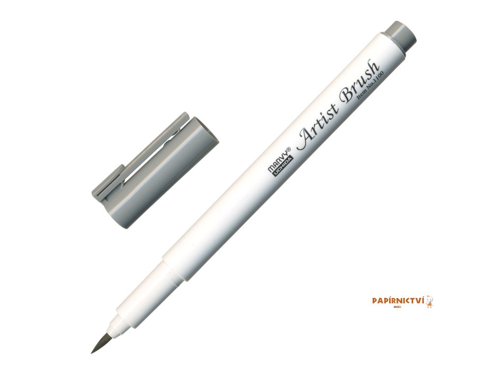 barva šedá • popisovač Marvy 1100 Artist Brush se štětcovým hrotem je rozmývatelný vodou • obsahuje barevný inkoust na vodní bázi • vhodný na vybarvování obrázků, otisků razítek (natištěných permanentním inkoustem), ilustrace • flexibilní štětcový hrot umožňuje vytvářet tenké i tlusté linky • barvy lze vzájemně propojovat • netoxický, bez kyseliny
