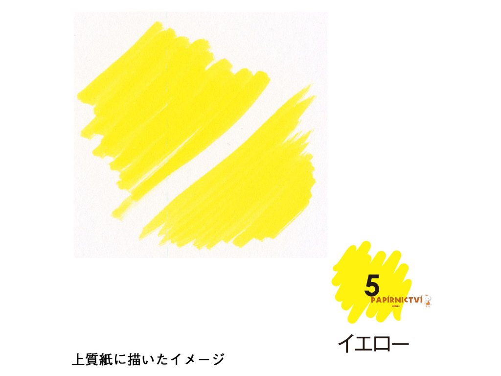 barva žlutá • popisovač Marvy 1100 Artist Brush se štětcovým hrotem je rozmývatelný vodou • obsahuje barevný inkoust na vodní bázi • vhodný na vybarvování obrázků, otisků razítek (natištěných permanentním inkoustem), ilustrace • flexibilní štětcový hrot umožňuje vytvářet tenké i tlusté linky • barvy lze vzájemně propojovat • netoxický, bez kyseliny
