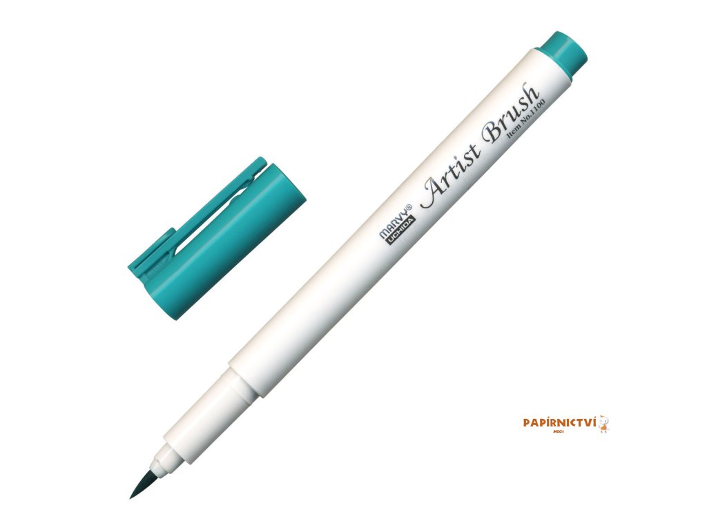 barva hráškově zelená • popisovač Marvy 1100 Artist Brush se štětcovým hrotem je rozmývatelný vodou • obsahuje barevný inkoust na vodní bázi • vhodný na vybarvování obrázků, otisků razítek (natištěných permanentním inkoustem), ilustrace • flexibilní štětcový hrot umožňuje vytvářet tenké i tlusté linky • barvy lze vzájemně propojovat • netoxický, bez kyseliny