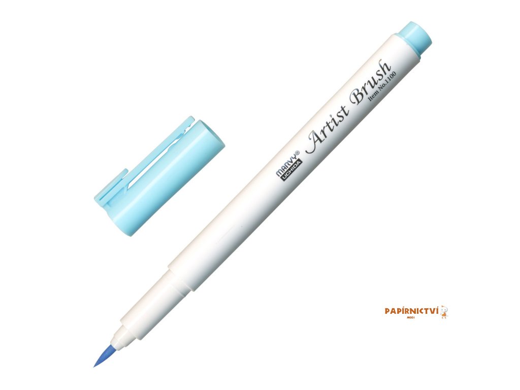 barva modro-zelená • popisovač Marvy 1100 Artist Brush se štětcovým hrotem je rozmývatelný vodou • obsahuje barevný inkoust na vodní bázi • vhodný na vybarvování obrázků, otisků razítek (natištěných permanentním inkoustem), ilustrace • flexibilní štětcový hrot umožňuje vytvářet tenké i tlusté linky • barvy lze vzájemně propojovat • netoxický, bez kyseliny