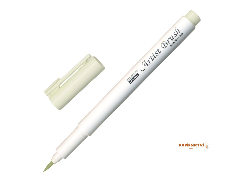barva zelená celadon • popisovač Marvy 1100 Artist Brush se štětcovým hrotem je rozmývatelný vodou • obsahuje barevný inkoust na vodní bázi • vhodný na vybarvování obrázků, otisků razítek (natištěných permanentním inkoustem), ilustrace • flexibilní štětcový hrot umožňuje vytvářet tenké i tlusté linky • barvy lze vzájemně propojovat • netoxický, bez kyseliny