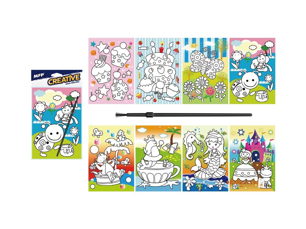 Malování vodou. Udělejte si pohodové odpoledne s dětmi a vybarvěte si obrázek. Set obsahuje kartonový list a štětec.NÁVOD: