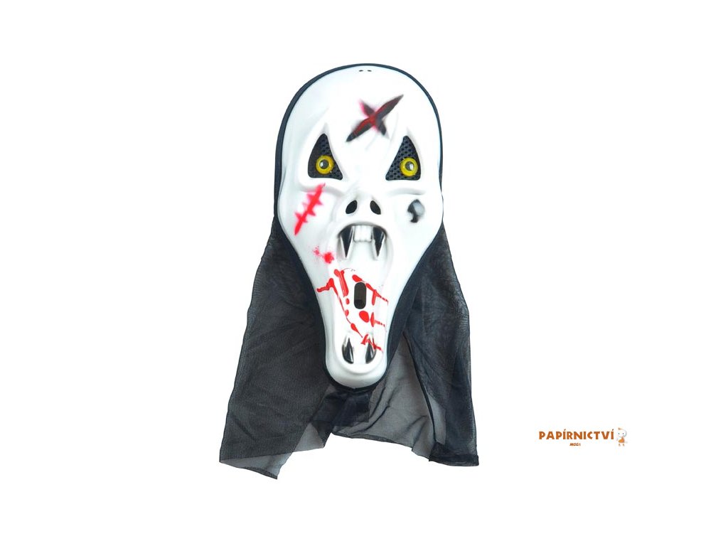 Karnevalová maska Vřískot bílá - jizvy. Věřte, že s touto maskou budete středem pozornosti na každém maškarním plese. Je také ideálním doplňkem na halloweenskou párty. Díky zadní síťce je maska prodyšná a velice dobře drží na hlavě. Padne opravdu každému, je v univerzální velikosti. Díky otvorům na nose se v masce příjemně dýchá a nic Vás neomezuje.UPOZORNĚNÍ: