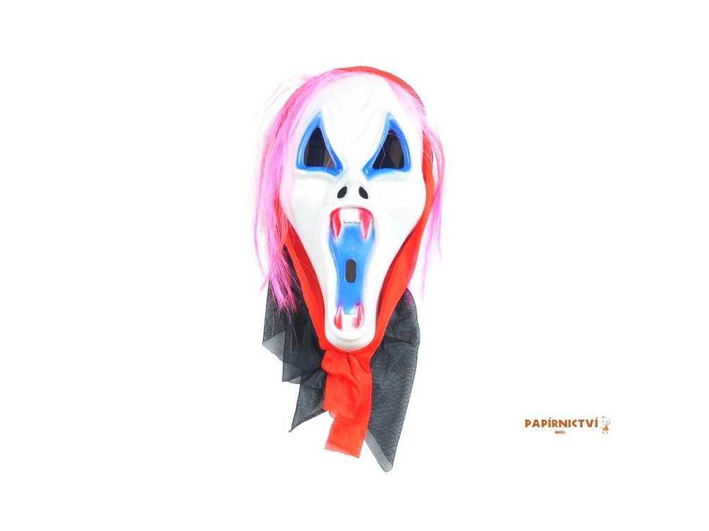 Karnevalová maska Vřískot s červenými vlasy. Věřte, že s touto maskou budete středem pozornosti na každém maškarním plese. Je také ideálním doplňkem na halloweenskou párty. Díky zadní síťce je maska prodyšná a velice dobře drží na hlavě. Padne opravdu každému, je v univerzální velikosti. Díky otvorům na nose se v masce příjemně dýchá a nic Vás neomezuje.UPOZORNĚNÍ: