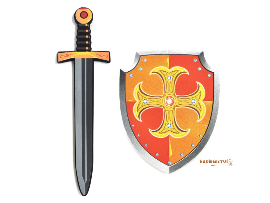 Meč a štít pěnový set. Délka meče 42,5 cm. Obsah balení - meč, štít.