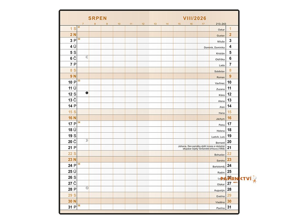 Měsíční diář - Božka - Color - Okrová BMB9-8-26
