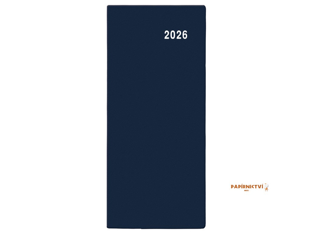 Jednoduchý a praktický měsíční diář vyrobený z jemného hladkého materiálu s polomatným povrchem modré barvy. Ideální pro každého, kdo si oblíbil měkkou šitou vazbu.