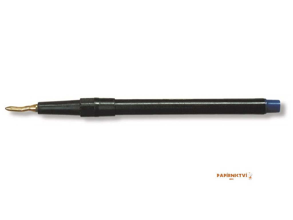 Klasická modře píšící středoobsahová kuličková psací vložka. Určená k výměně do tužek za náplň stejného typu. Průměr kuličky 0,635 mm. Minimální délka psací stopy je 3000 metrů. Určená pro použití ve škole i v kanceláři. Bez spotřebitelského obalu.