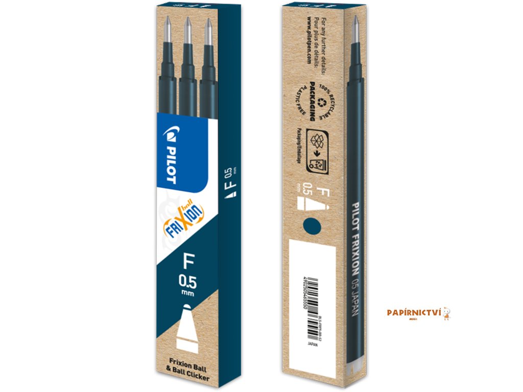 Sada 3 modročerných gelových náplní (hrot F; 05) pro rollery Pilot: FriXion Ball, FriXion Slim, FriXion LX a FriXion Clicker.