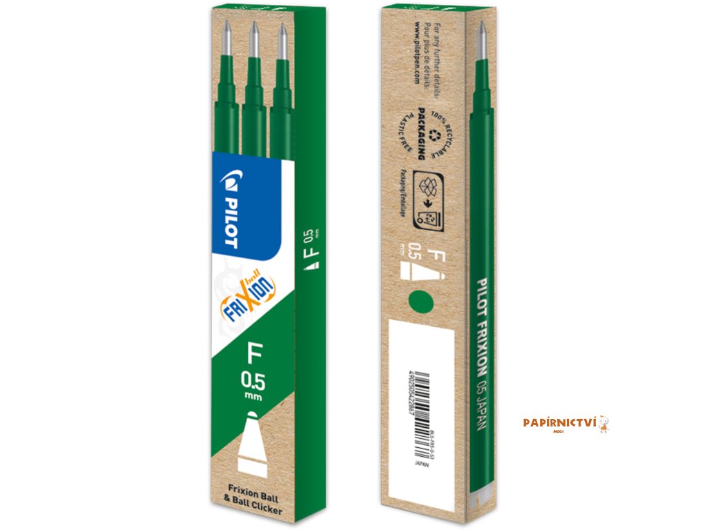 Sada 3 zelených gelových náplní (hrot F) pro rollery Pilot: FriXion Ball, FriXion Slim, FriXion LX a FriXion Clicker.