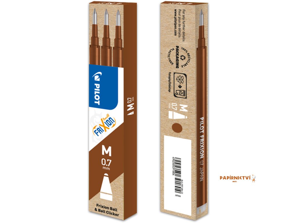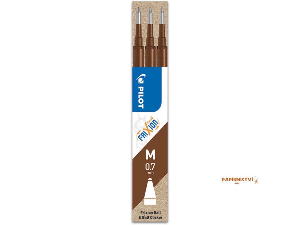 Sada 3 hnědých náplní se středním hrotem pro rollery Pilot: FriXion Ball a FriXion Clicker.