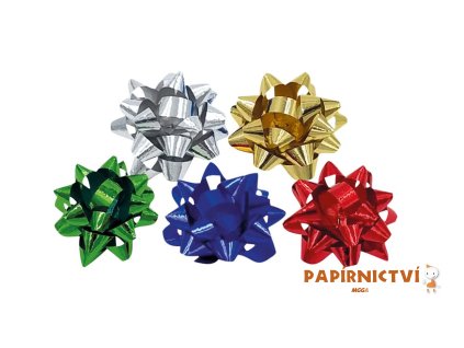 Rozetka v mixu metalických barev. Ideální pro moderní ozdobení dárku. Rozetka má na spodní straně lepící pásku pomocí které ji připevníte na krabičku.