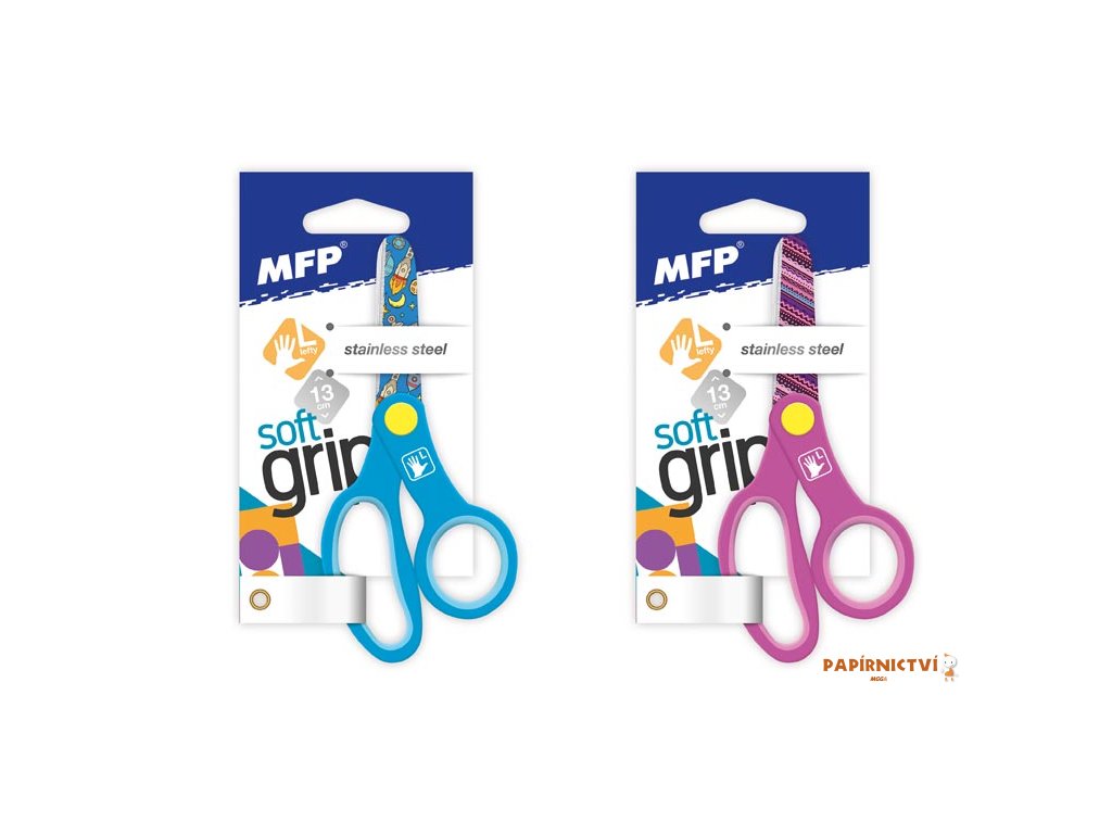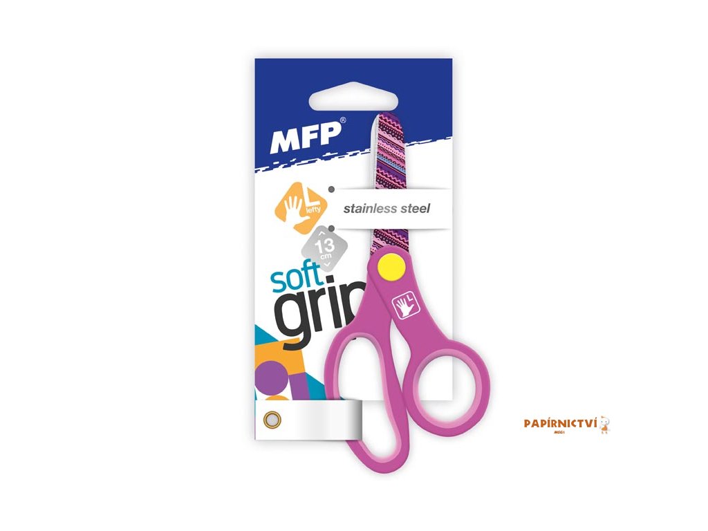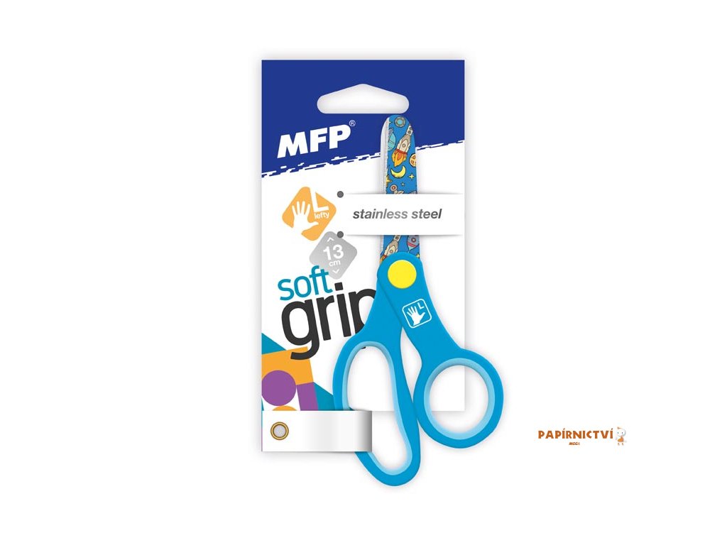 Dětské nůžky pro leváky s barevným potiskem na nožích o velikosti 130 mm. Nůžky mají zaoblenou špičku, měkkou ergonomickou rukojeť a jsou vhodné do kanceláře i domácnosti.Nabízíme ve 2 provedeních: modré - rakety, růžové - čáry