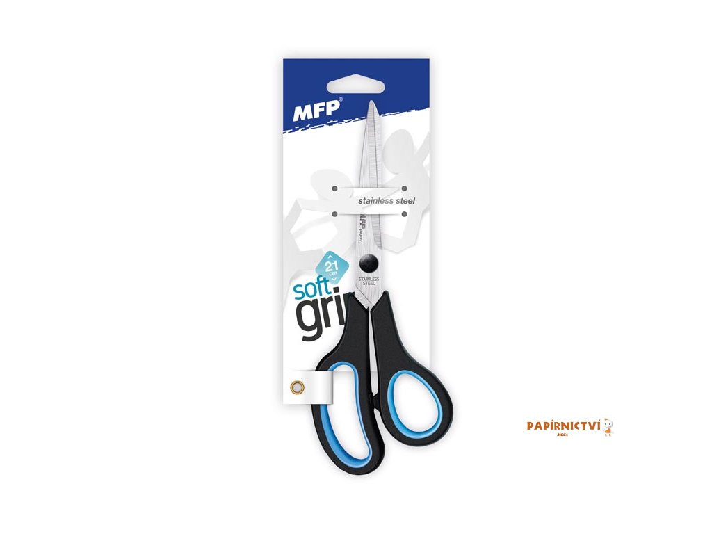 Nůžky vhodné do školy, kanceláře, ale i pro domácnost. Ostří je vyrobeno z tvrzené nerezavějící ocele. Rukojeť je ergonomicky tvarovaná a opatřena technologií SOFT GRIP, která zabraňuje klouzání.Barevné provedení: černo-modrá