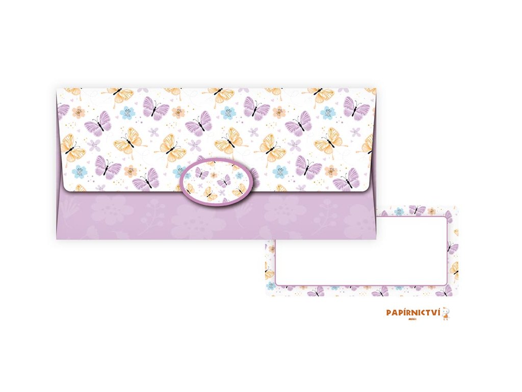 Obálka na peníze – s jemnými motýlyLehkost a radost v každém detailu – přesně tak působí tato obálka na peníze zdobená něžnými motýly a drobnými květy. Její pastelové barvy navozují pocit hravosti a optimismu, díky čemuž se hodí pro narozeniny, svátky i jiné slavnostní chvíle.