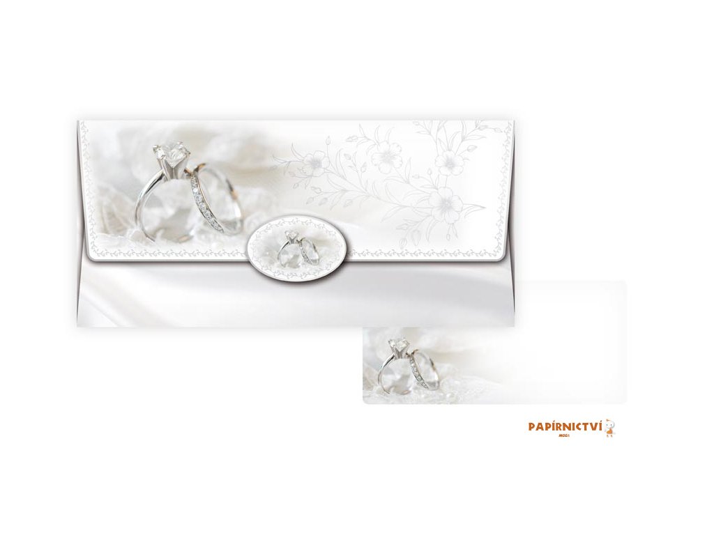 Obálka na peníze – svatební prstýnky a květinová kresbaDecentní svatební obálka na peníze v jemně bílých tónech se svatebními prstýnky a květinovou kresbou je krásným doplňkem svatebního daru. Působí čistě a slavnostně, takže dokonale podtrhne atmosféru výjimečného dne.