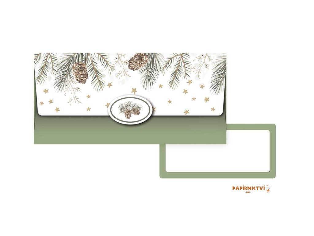 Dárková obálka na peníze s vánočním motivem a uzavíratelnou klopou - Darujte svým blízkým dárek k Vánocům v podobě obálky na peníze. Do obálky lze vložit peníze nebo dárkový poukaz. Uvnitř je kartička bez textu, na kterou můžete napsat věnování.