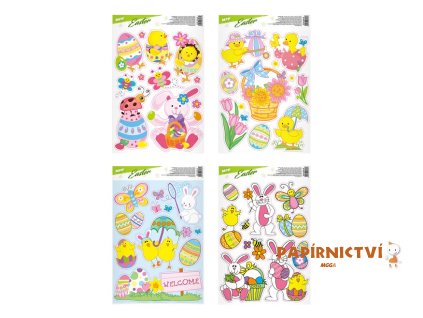 Okenní fólie velikonoční kuřátka, vajíčka, motýlci, zajíčci. Oslavte svátky jara s těmito krásnými samolepkami na okno. Vytvoří Vám kouzelnou velikonoční atmosféru.