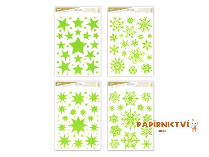 Vánoční okenní fólie svítící sněhové vločky a hvězdy. Vyzdobte si okno těmito krásnými samolepkami. Vytvoří Vám kouzelnou vánoční atmosféru u Vás doma. Jsou vhodné na jakékoli...