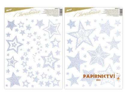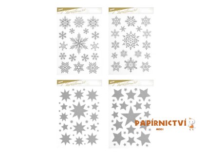 Vánoční okenní fólie glitrová s motivy stříbrných hvězd a vloček. Pomocí okenních fólií si velmi snadno a rychle vytvoříte vánoční atmosféru na celé svátky. Fólie se lehce...