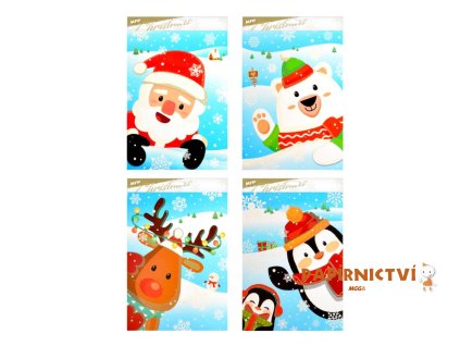 Vánoční barevná okenní fólie s gltrem a dětskými vánočními motivy Santa Clause, ledního medvěda, soba a tučňáků. Pomocí okenních fólií si velmi snadno a rychle vytvoříte...