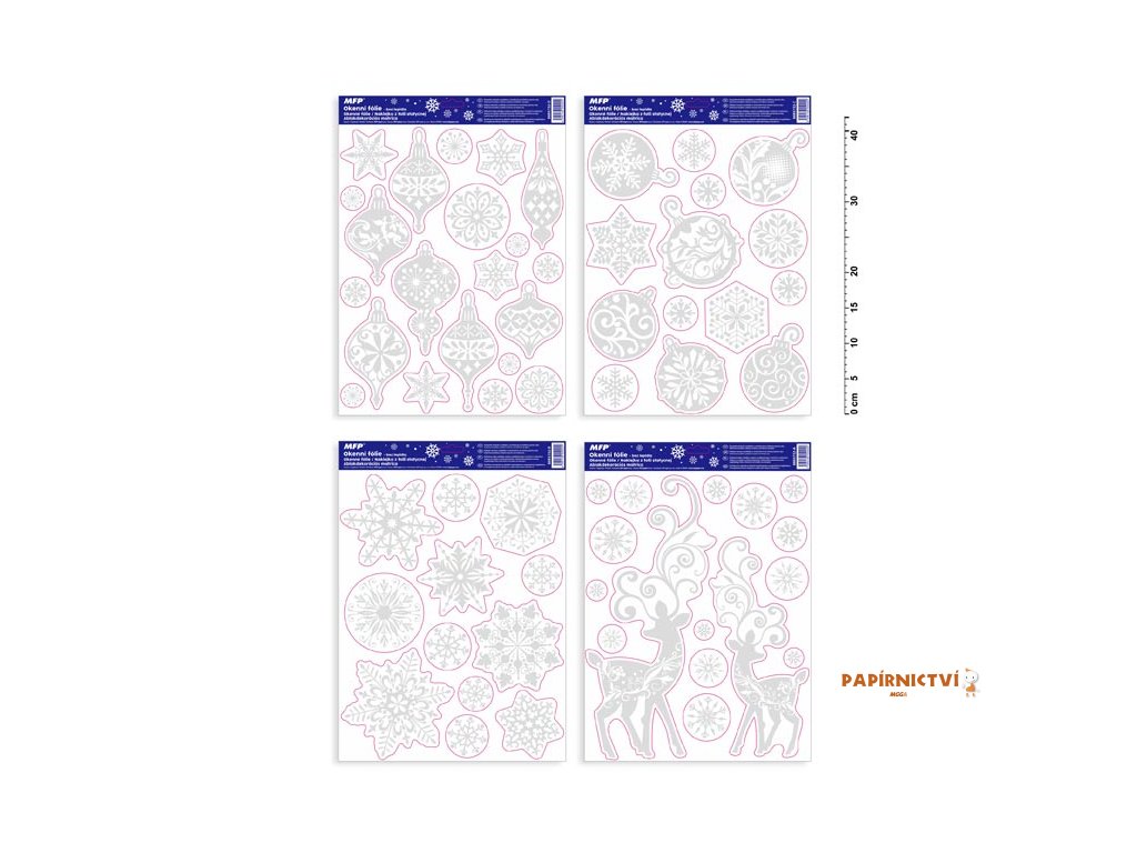 Vánoční okenní fólie s motivy vánočních ozdob s glitrem. Vyzdobte si okno těmito krásnými samolepkami. Vytvoří Vám kouzelnou vánoční atmosféru u Vás doma. Jsou vhodné na jakékoli hladké plochy, například sklo, výlohy, zrcadla nebo kachličky. Čisté, bez lepidla a opakovaně použitelné.