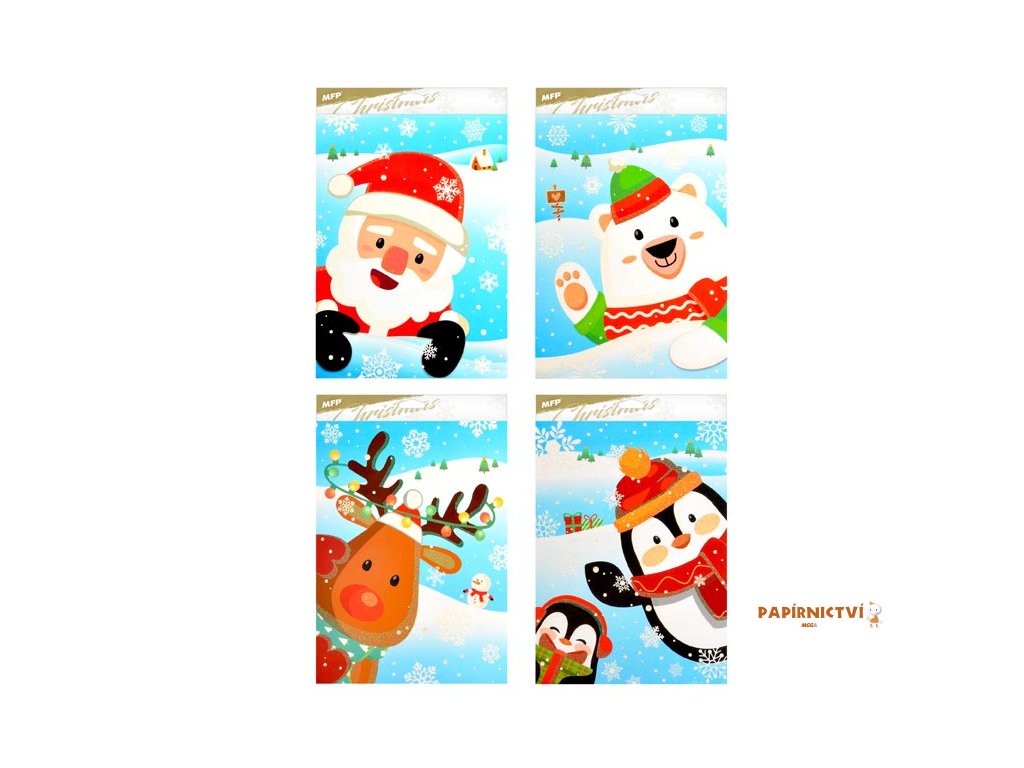 Vánoční barevná okenní fólie s gltrem a dětskými vánočními motivy Santa Clause, ledního medvěda, soba a tučňáků. Pomocí okenních fólií si velmi snadno a rychle vytvoříte vánoční atmosféru na celé svátky. Fólie se lehce odlepují a nalepují a nezanechávají za sebou žádné stopy lepidla.NÁVOD:
