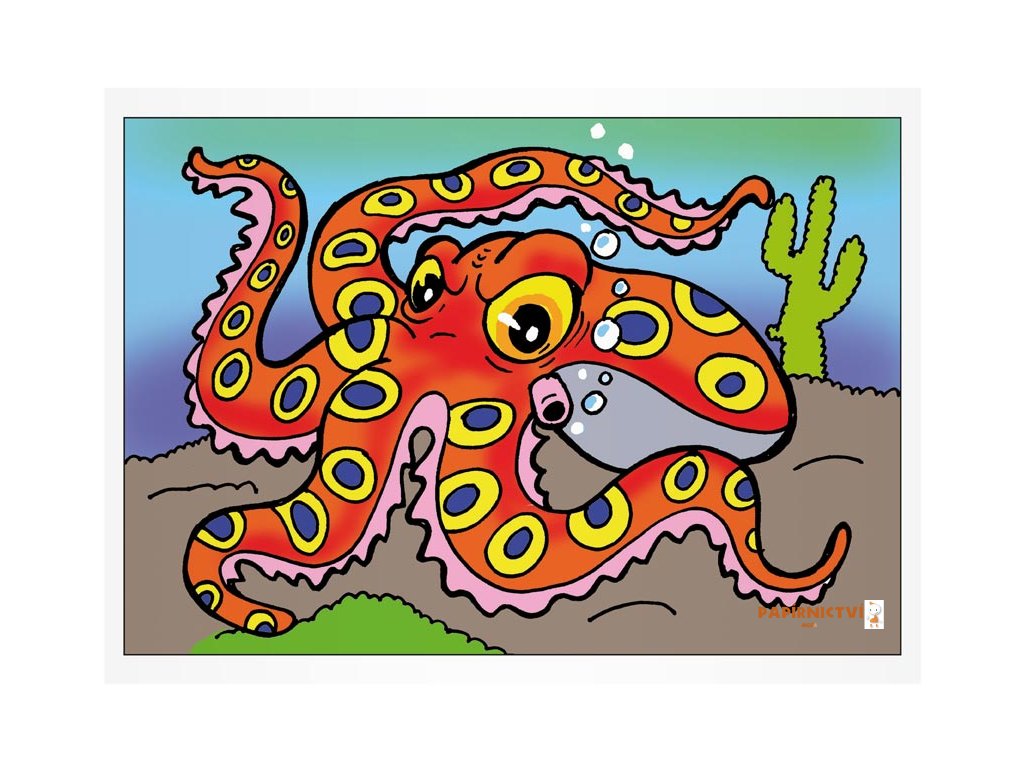 Počet předloh k vymalování: 8 (chobotnice, ryby, tučňák, žába, lachtan, želva, rak)