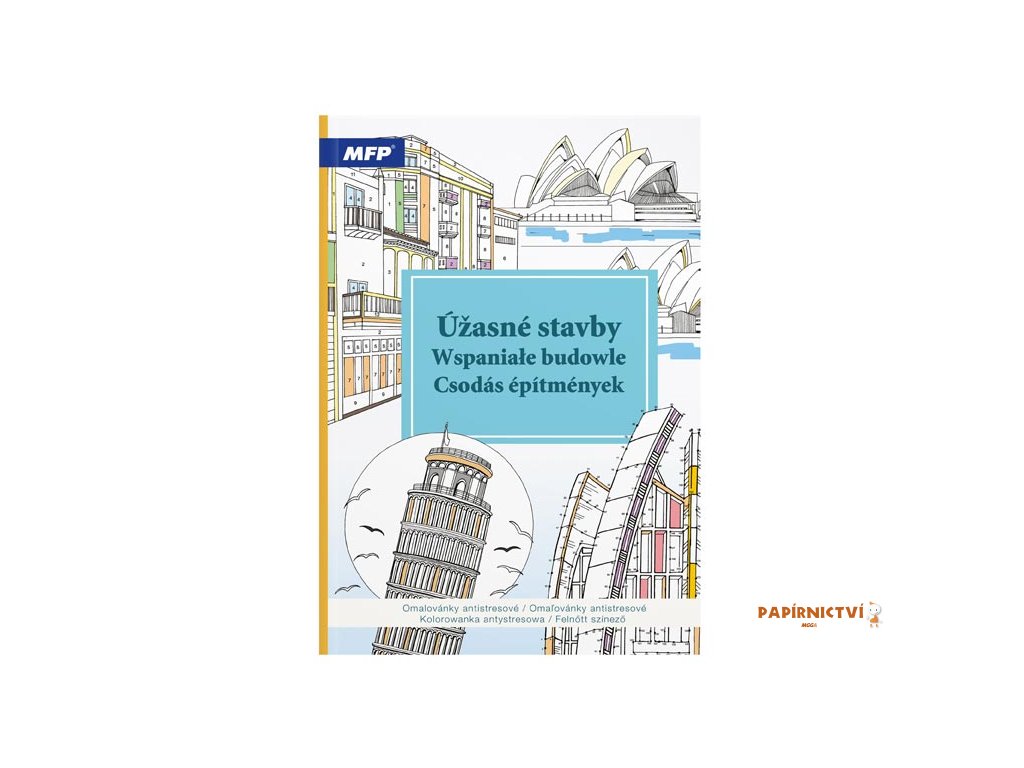 Poznejte nejznámější světové památky a architektonické skvosty z jiné perspektivy – skrze vlastní fantazii. Antistresové omalovánky Úžasné stavby od MFP vám umožní vybarvit slavné budovy, mosty i moderní architekturu tak, jak je ještě nikdo neviděl.